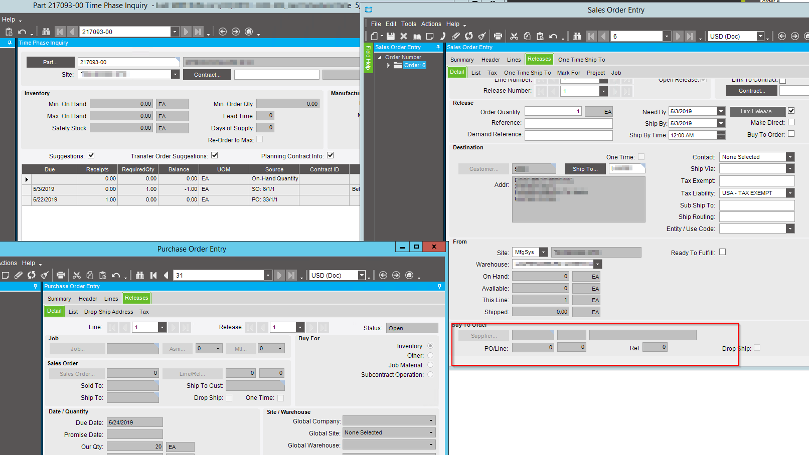 You can use Multi-Level Pegging to get a more granular look at which supplies satisfy which demands, but it still won’t give you a concrete link between a PO and SO. You can select it to run during MRP, or you can run it afterwards as its own process. If you need this information in a BAQ or report, the links are in Erp.PegLink, Erp.PegDmdMst, and Erp.PegSupMst tables.