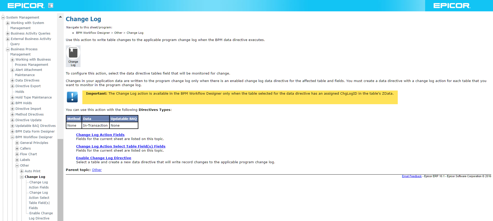 Change Logs used to be handled with BAMs in E9, but in E10 they removed