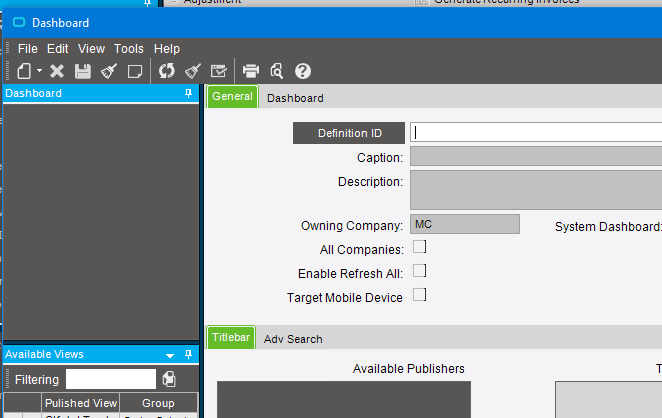 A dashboard needs a BAQ (Business Activity Query - basically the thing that extracts data from the Epicor system). A dashboard is just a UI wrapped around the BAQ’s output. Have you made your BAQ yet?
