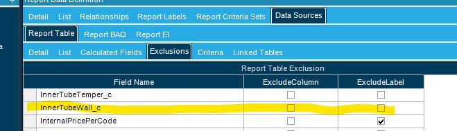 In the dataset definition of the SSRS report, T12 is the part table. I’ve tried adding T12.[InnerTubeWall_c] and T12.InnerTubeWall_c as InnerTubeWall as well as other combinations. Currently it is: