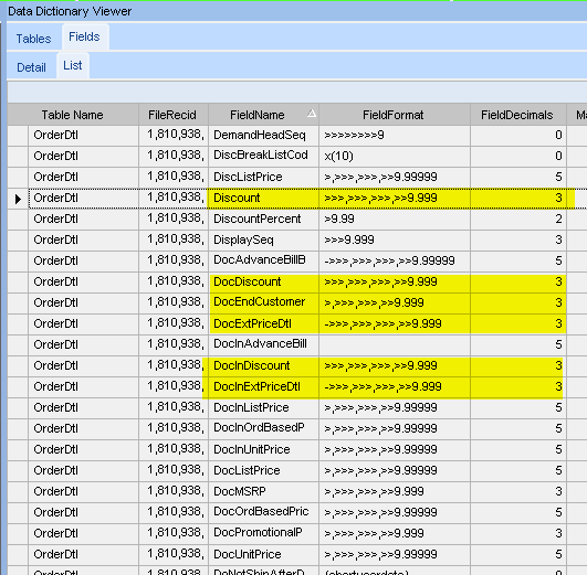 Our company settings are 2/4/4 (General / price / cost). But the Data Dictionary for OrderDtl, shows the several āpriceā fields being limited to 3 decimal places:
