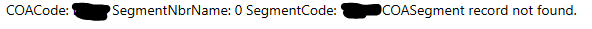 I have run into situations like this and found I have had to get creative. Here are a couple of creative thoughts. I don’t see the field, SegmentNbrName, in the table, COASegValues so the DMT may be giving you incorrect information which it has been known to do. I would try using the field, SegmentNbr instead which is an Epicor generated field in the COASegment table. You could also try the SegmentNbr and include the SegmentNbrName but as a blank field. As I said you may need to be creative.
