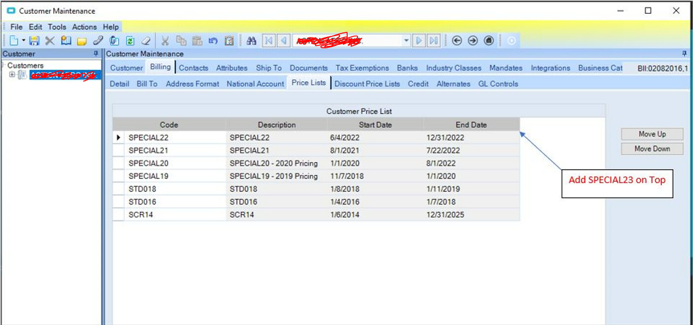 In my experience, you have to “unwind” the existing price lists by using a DMT delete run, then reload the new stacks completely. In this case you could use a BAQ to get the Delete run and then increment the numbers and added the new list for each customer who needs it in position 1.