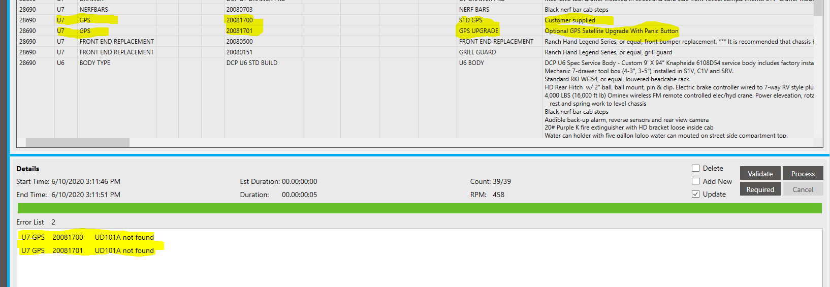 I’ve uploaded my UD table, I’ve got 3 sets of specs on it (U7, U4, and U6), but it’s saying that my U7 is not found, you can see it in the upper portion of the clip that it’s in the table.