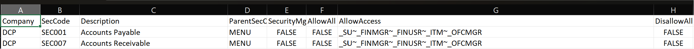 Thank you for your response. I actually tried TRUE, FALSE, 0, 1 for AllowAll and no combination worked. What I am finding is the version of DMT I have has several bugs that have since been fixed (2022.2.21) . We ended up deselecting the toggle in Epicor and then I ran the DMT to update the Security Groups. We are going live March 1–so I’m hesitant to take a patch.
