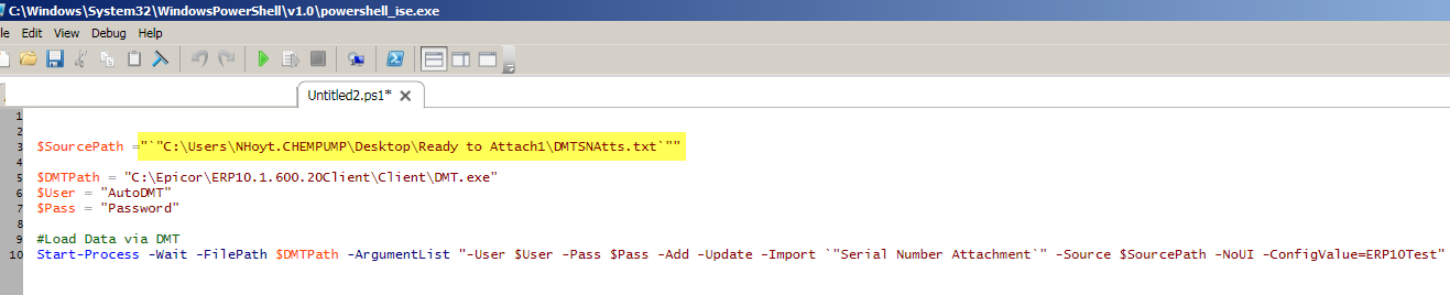 PS I:\> $DMTPath = "C:\Epicor\ERP10.2Client\Client\DMT.exe"