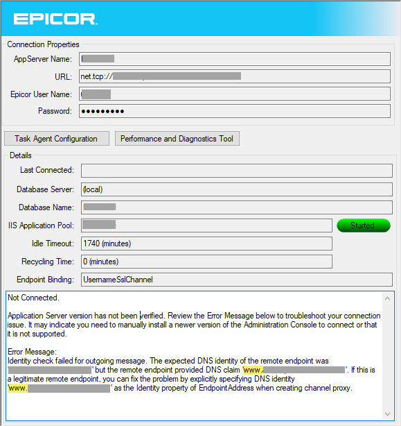 Also - notice the reference to the “www.” prefix in the error details. We do not, and have never, referenced any of our corporate URLs with the “www.” prefix. We don’t do it in IIS, we don’t do it in our DNS config, nor do we do it when generating SSL certificates… so, I’m not sure why Epicor is detecting this.