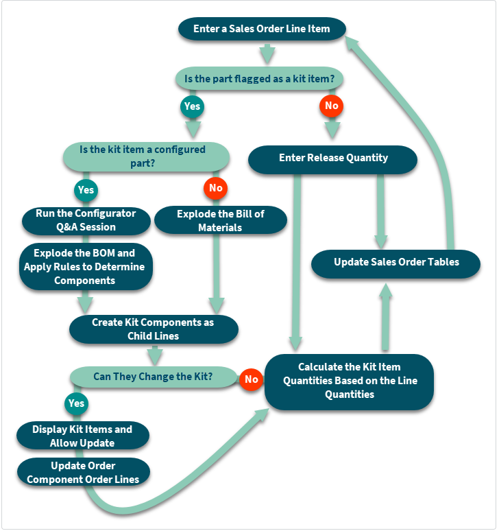 Below is a flow chart found in Epicor “Help”… (search for Understanding Sales Kitting). The 2nd prompt is whether the kit is a “configured part”… but notice there is a path forward if the answer is “No”. You can still complete the sales process.