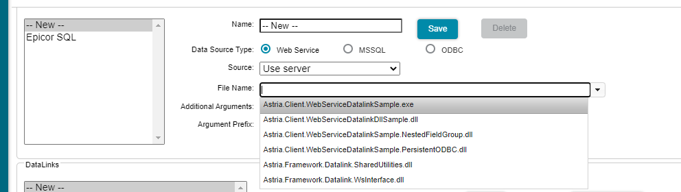 This File name is not on our server Astria.ProSvc.WebDatalink.dll. All we have is this when I tried to create the connector while signed in as the Super Admin User: