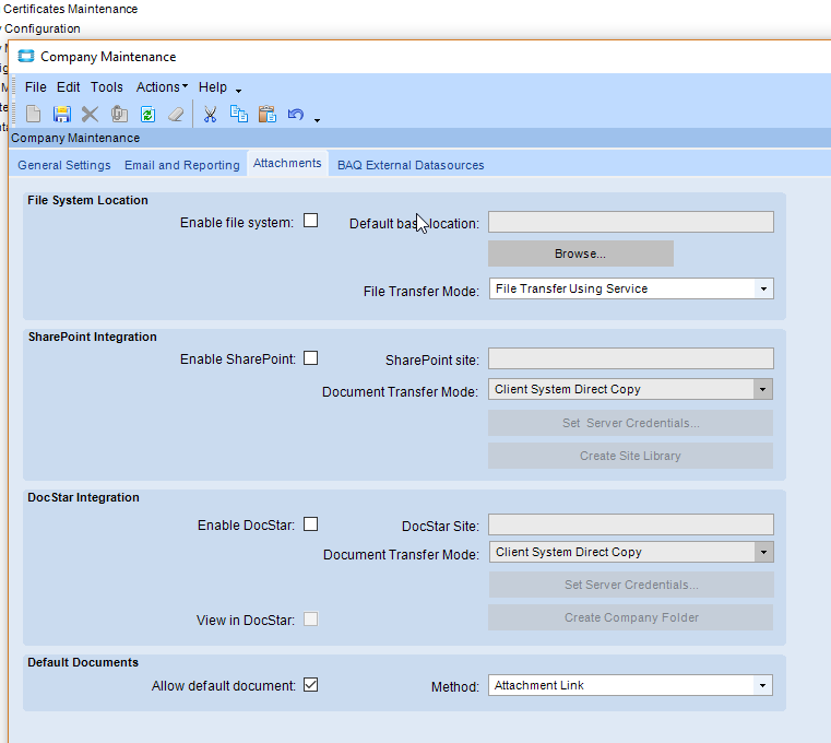 And I made both Company Maintenance attachments tabs the same except for the Default base location.