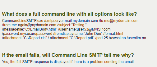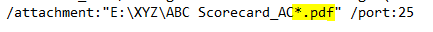 it would then appear that the programmer doesn’t like wildcards are part of this switch, so you would have to get a list of the attachments via the batch file via an iterative for loop, store them into a variable, and pass that variable into the commandlineSMTP attachment switch. You could just pipe the file names into a text file (if you didn’t want to do all of this in memory) via a dir listing with whatever filters you want. Then, something like: