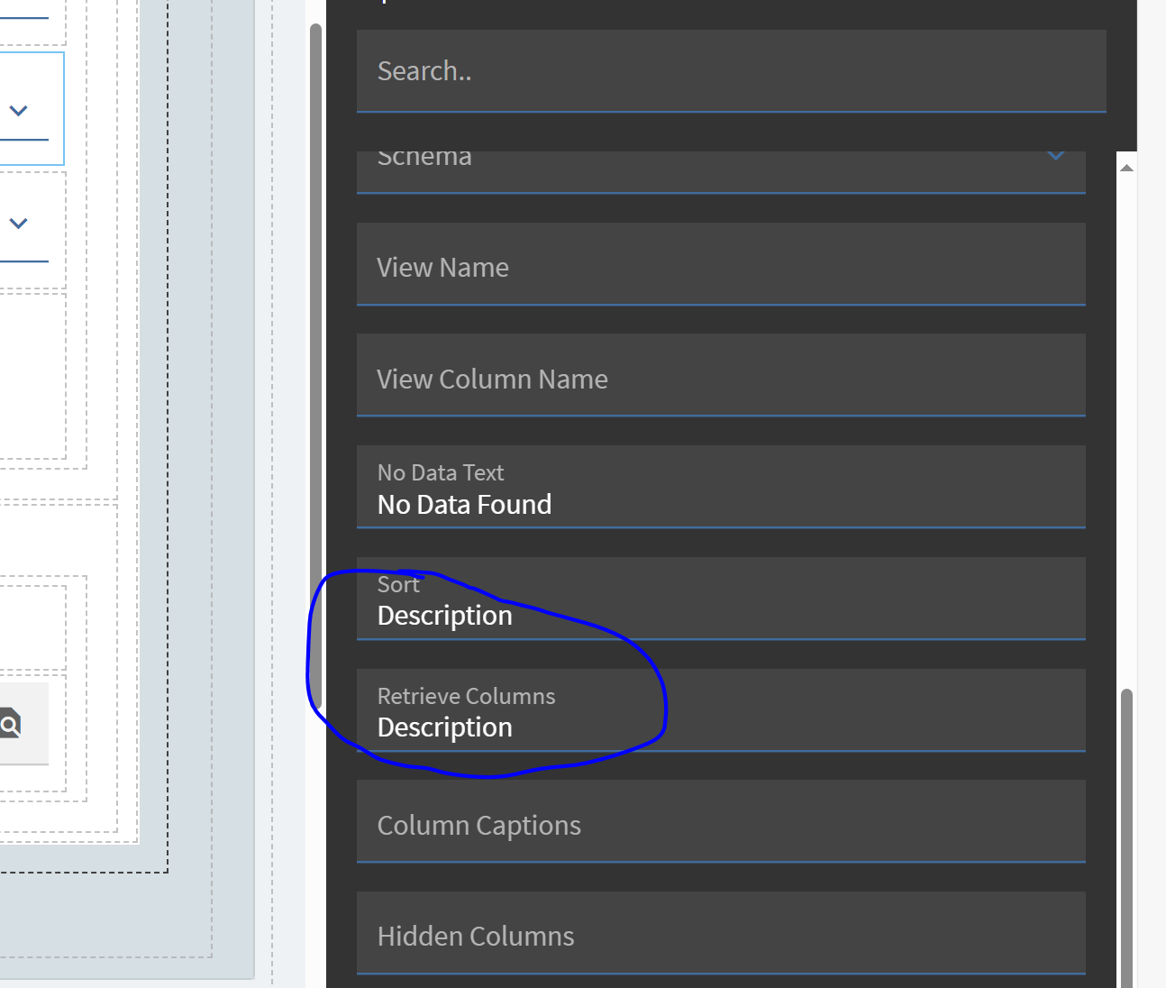and I tried to use Description as a value for Retrieve columns: