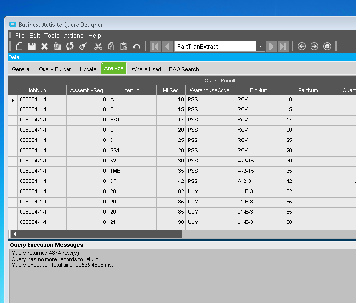 The attached screenshot is a first for me. After I killed the Epicor client due to my Active Home Page locked up, this active BAQ window was not only still active, but you could use it to retrieve data even though the session had terminated and the Epicor client was shutdown.