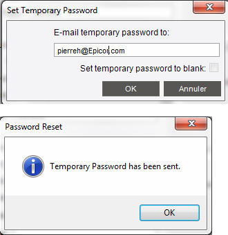 Selecting to reset ask for the user email … shows the actual email if present… Pressing Ok sends it.