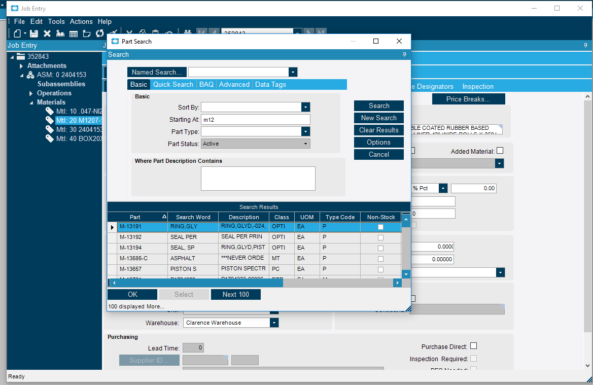 The part search in E10 is acting different than it did in E9. If the part starts with a letter, it pulls up parts with that letter and then special characters first before searching for the rest of the part number.