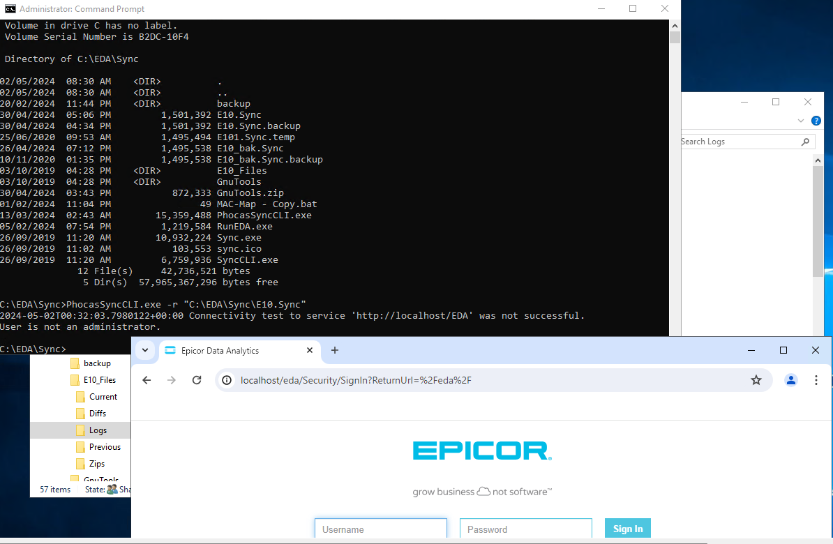Epicor support has also given all the setting to Phocas support but there is nothing they can do as they claim it’s credential issue though the account is member of local and domain admin. Even using using the administrator to login also show “User is not an administrator”
