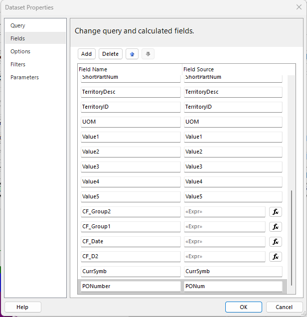 Thanks for all that info. I think I was able to ensure that all of the quotations are good and normal. So basically, I’ve changed all of the stuff within Epicor and I’ve been told that I’ve done it correctly. Now in report builder I’ve edited the query and added the PONum field, I also went ahead and tried adding the PONumber to the report just to see if I can get it to spit it out (still getting errors).