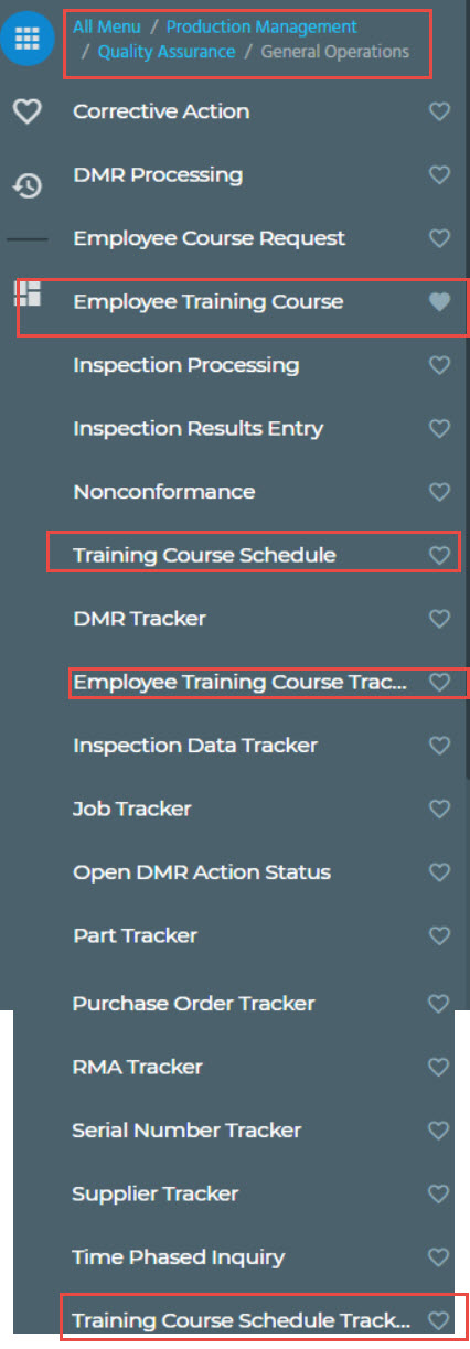 QA>GenOps>Training Course Schedule - here you setup a schedule of training for a particular course and select participants. You can also mark the results of the course after completion here.