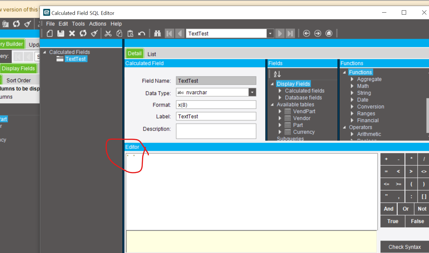The screen above is the test BAQ, and the purpose of the field I am trying to create is that