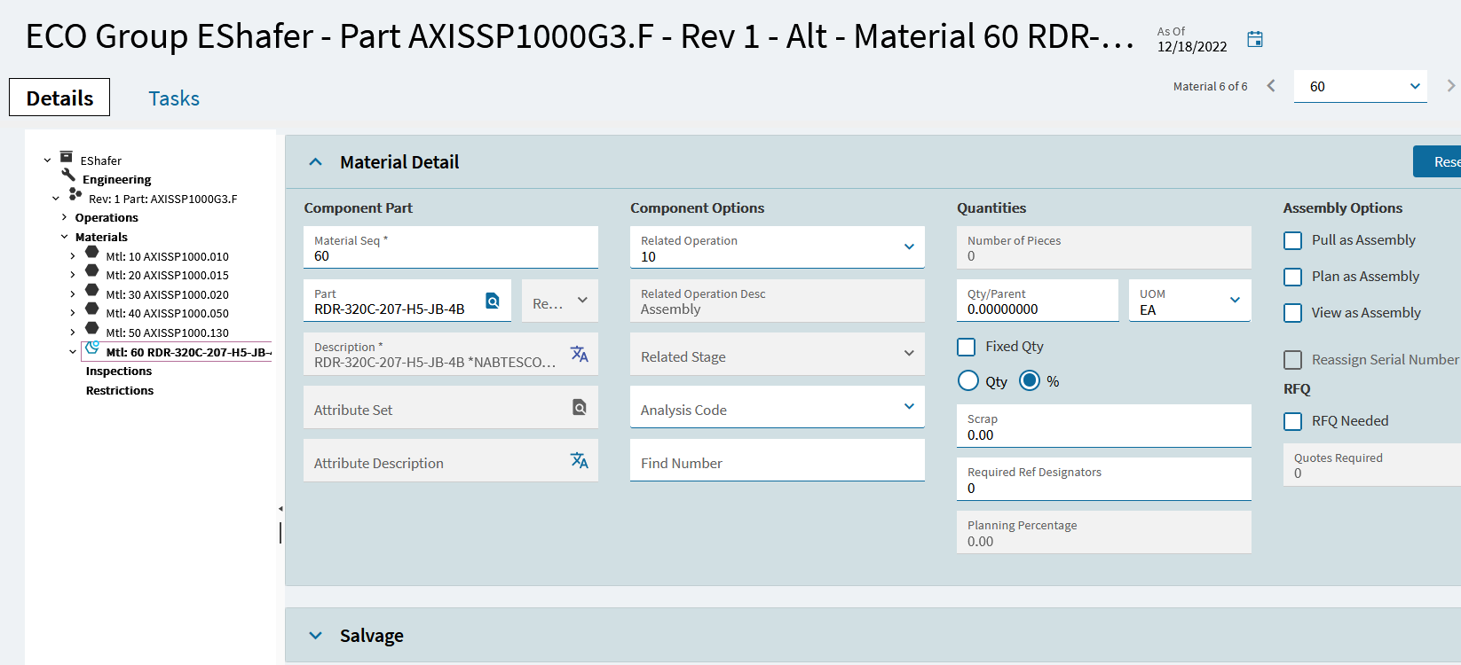 Kinetic on browser. Using Engineering Workbench - I “add new material”, do a “part search”, select what I want, and it puts an entirely different part into the box when I select it.