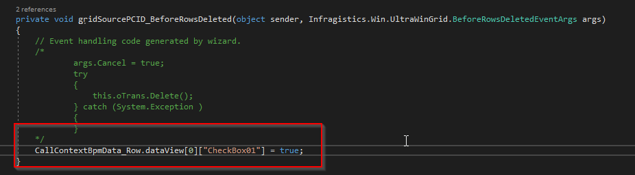 As far as the specifics you are asking about, you donât need to bind the button to anything. A button doesnât display anything, so the only reason to bind it to anything is for something like row rules. Once you make the button, you can use the wizard to create a button event for you. This gives you an empty method to put whatever code you want into that that method that will fire when you click it. So what I would probably do is change your new checkbox, then add an oTrans.Update() and it should trigger your update method. See the post below about using oTrans.Update()