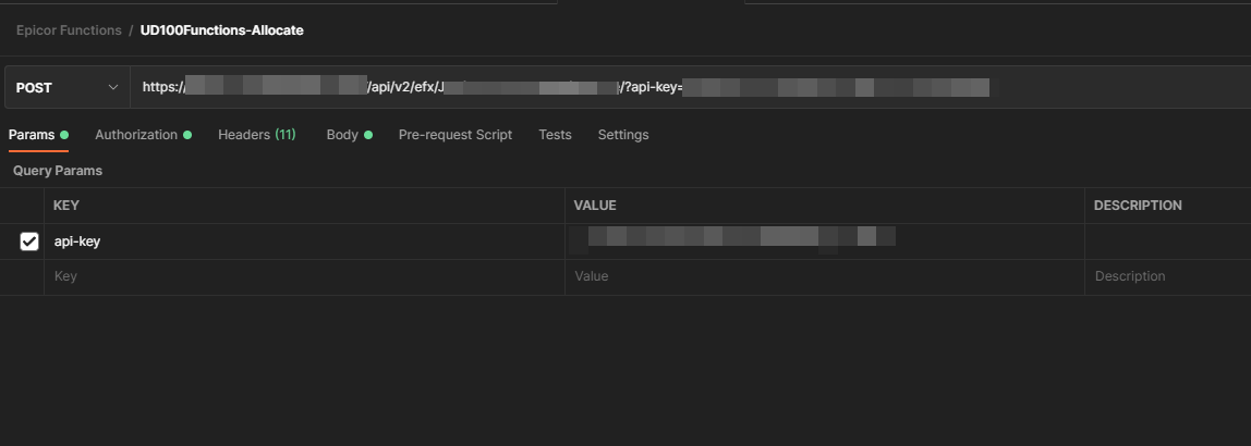 I have created an access scope for two BAQS and have created an API key for that access scope. When I go into Epicor Rest Swagger UI and run either of the BAQS with the API key that I created it works perfectly. However, when I do the same thing in Postman it throws the following error
