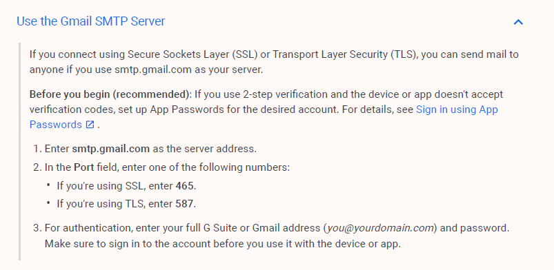 You can do it in Company setup as mentioned above. After you update the fields in Company Setup, be sure to restart the Task Agent. I have attached a guide showing how to setup G Suite for SMTP servers. I have done this before and it does work. Be sure for your issue, you read #3 in my attachment.