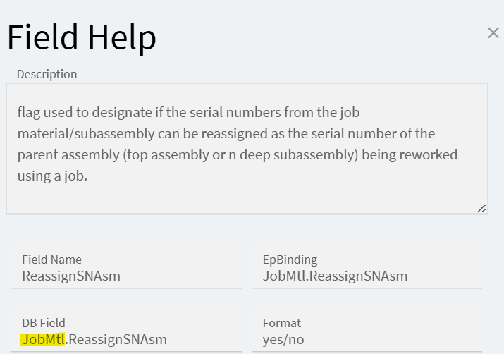 I think that’s only for assigning a serial number from job material as the serial number of the parent assembly. Or at least that’s the only place where I’ve seen it. We need the SN from the JobHead part.
