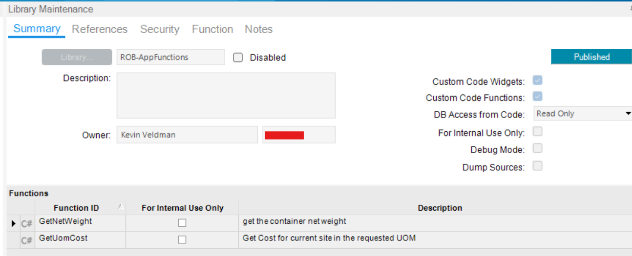 You have an internal flag at library and function level. When selected it stops it from being run ‘externally’ which includes the API which app studio uses.
