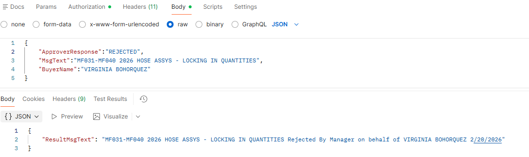 ResultMsgText = prefix +"Rejected By " + user + " on behalf of " + BuyerName + " " + today;