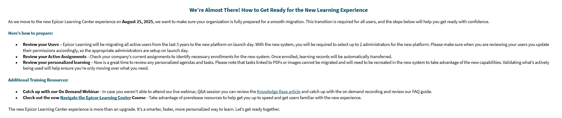 11 posts were split to a new topic: Epicor Learning Center Q&A
