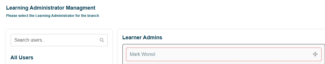 If you have Manage Learning Administrator, you (or someone who is) drag your ID into the Learner Admin box (Up to Four)