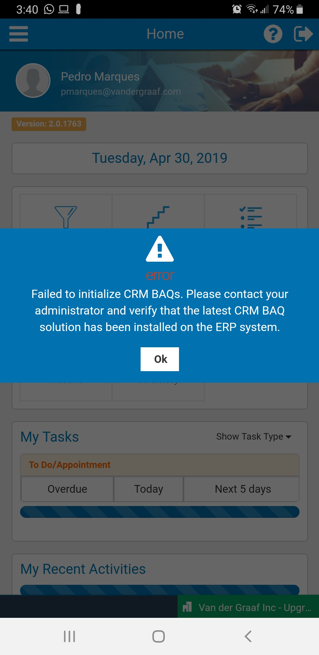 I’ve been trying to set up the Mobile CRM app on our environment. Been moving on from error to error and finally managed to log in but now I’m stuck with this: