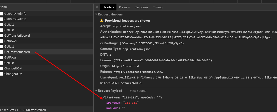 GetTransferRecord with the part you wish.