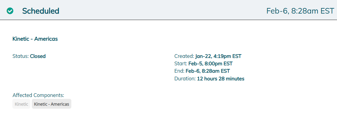 Maintenance window completed…829a ET.
