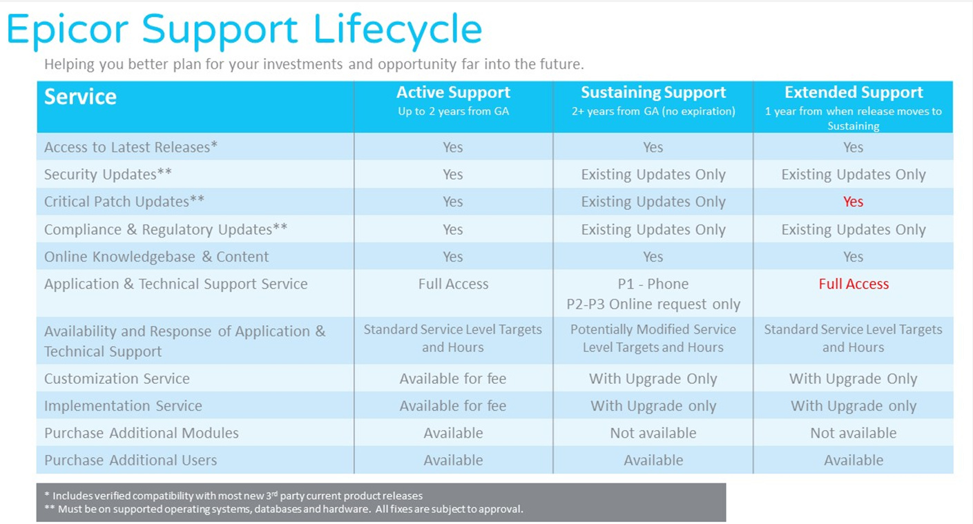 Calvin - yes - I see it as a matrix. Support options vary based on where your current production version falls within the product life cycle.