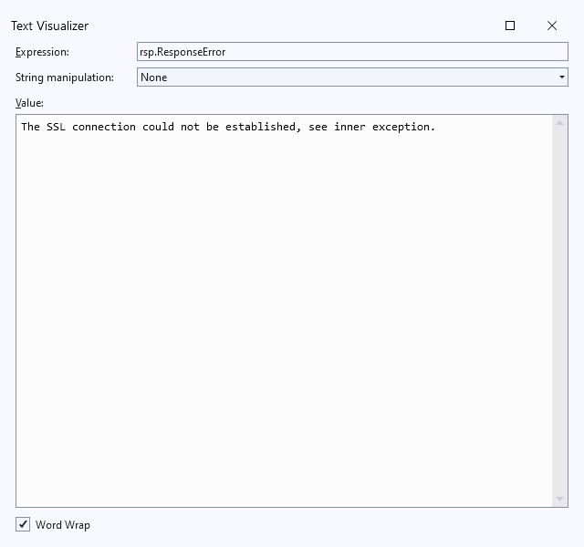 Then this doesn’t make any sense… I’m doind exactly what you’ve suggested and still getting the error. I’ even have the IgnoreCertErrors property = true.