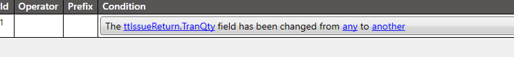 I then set the condition for TranQty changes from any to another.