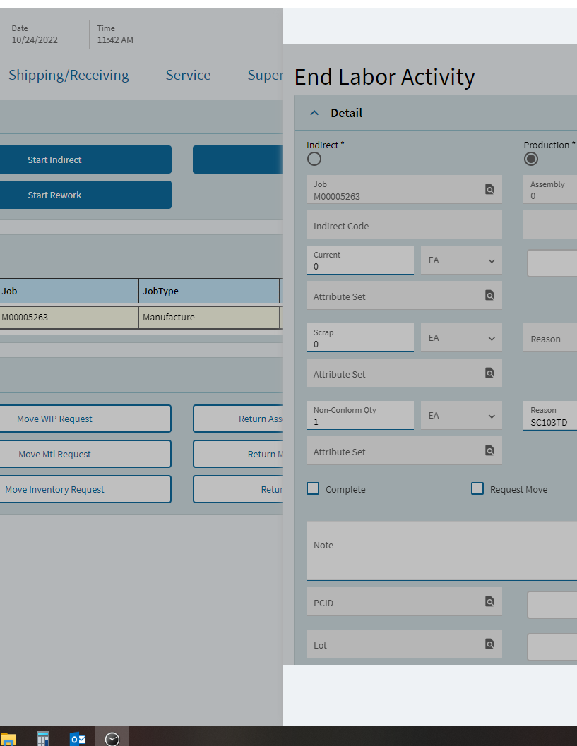 Seeing this error when trying to save 1 qty nonconformance on a 1qty job in Data Collection. NCR was not created. Serial number confirmed toi hav 1 qty assigned. Was able to create the nonconformance from the ERP system. What does this error mean?