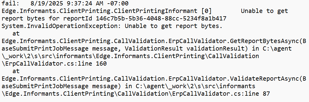 We are also experiencing this error message with one of our auto-print labels. Our setup works in the client version of Epicor, and all but one of our auto print bartender labels are working in the browser.