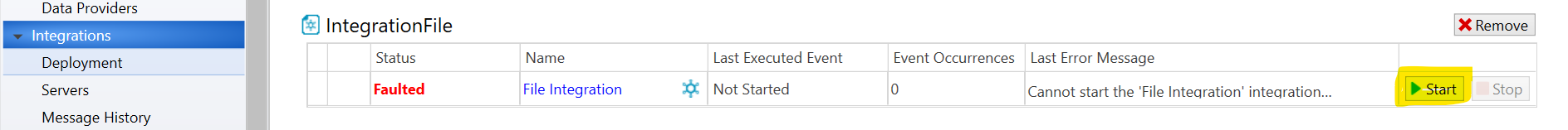 Now on the left tree area click on Integrations , if yours is not working just like mine was not you will see the status as fault and also the service is not started