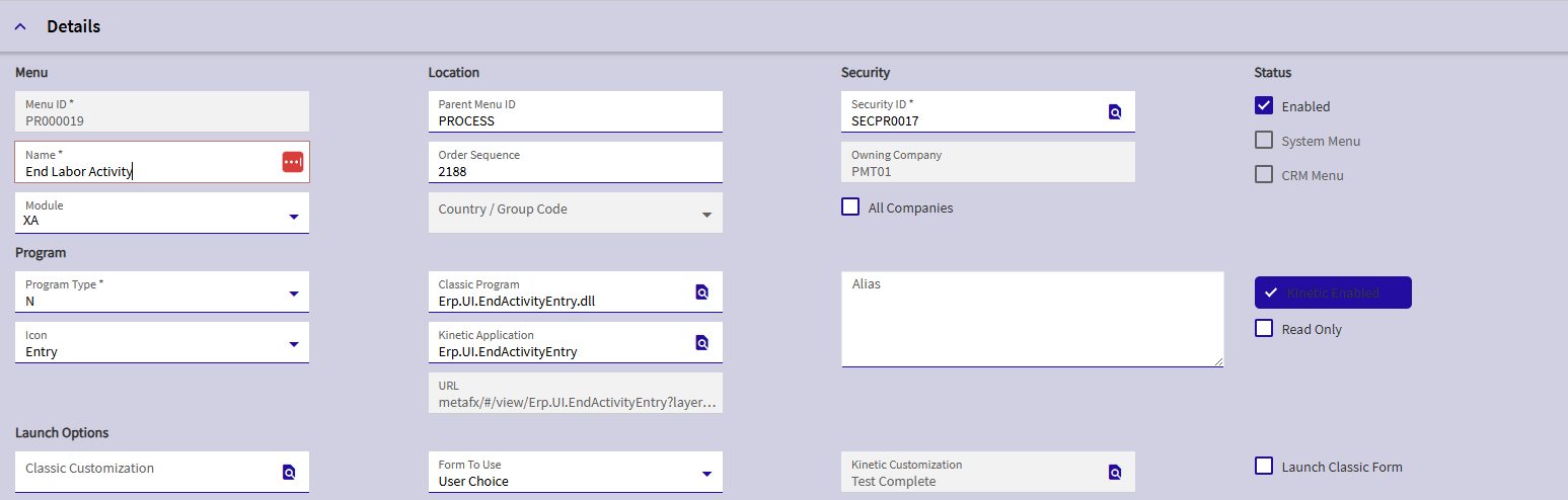 Is the layer on a menu somewhere, which is accessible to the user? Epicor checks to see if the user has access to the menu item before allowing launch (it has to be on a visible? branch of the menu somewhere with security access to the user)
