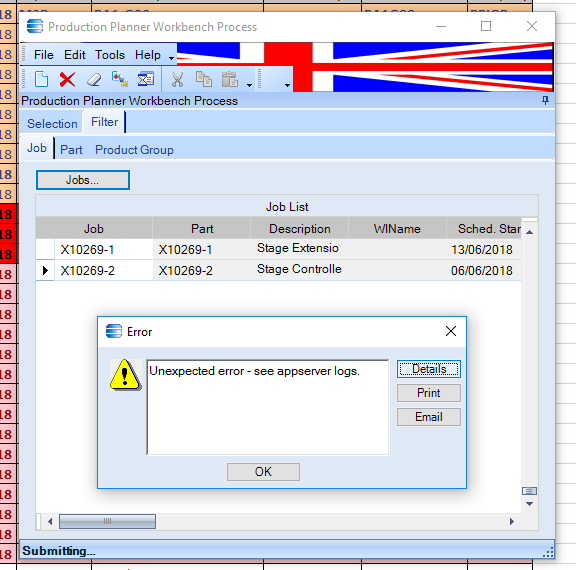 at Epicor.Mfg.UI.Adapters.PrdPlannerWBAdapter.SubmitToAgent(String agentID, Int32 angetSchedNum, Int32 agentTaskNum)