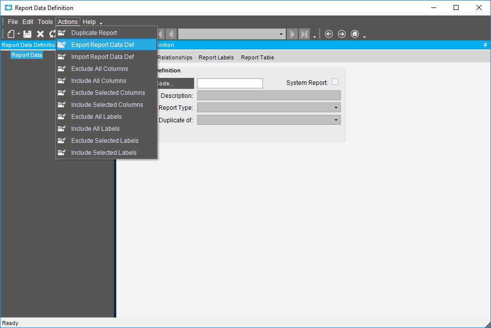 I’ve been trying to export a report data definition to an external file so I can save it (the server is being reset).
