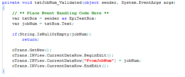 I’ve added a Textbox in the Move Wip Form, binded it to IR.FromJobNum same as the one besides the Job Button. But, when I reopen the customization, my textbox is in ReadOnly mode.