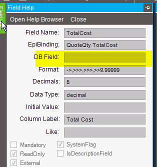 However, when I add the QuoteQty table to my BAQ, the TotalCost field is nowhere to be found. Does anyone have a reason for this? Is this field just hidden somewhere else, or am I unable to utilize this field for some reason?