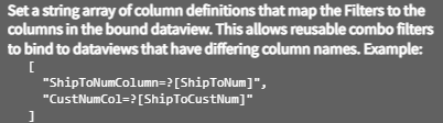 Note: You cannot have a space before the comma in Filters Params as that will cause a space to be inserted into your parameter string. For example, with the space, my filter would become Company='CO ', but without it it was Company='CO'.