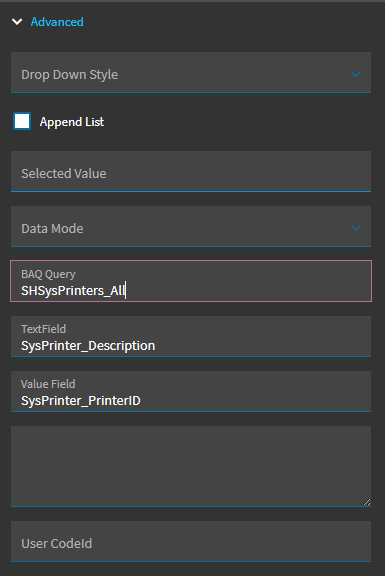 Note 2: The [Company] and [UserID] are both columns in the data view that this combo box's EpBinding is using.