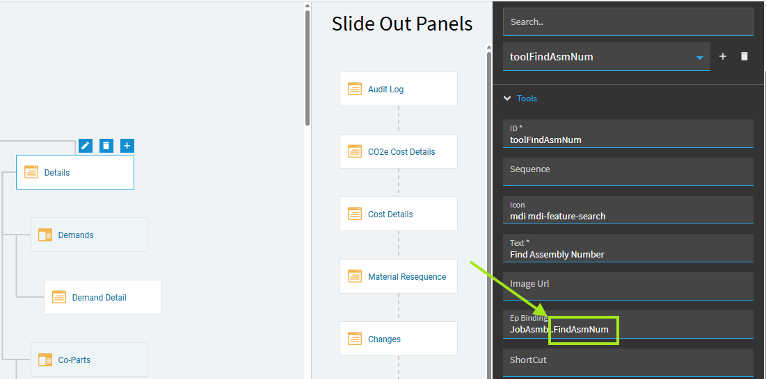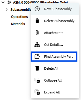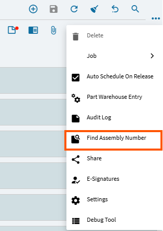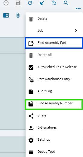 Epicor uses a slide out panel for Find Assembly Part.