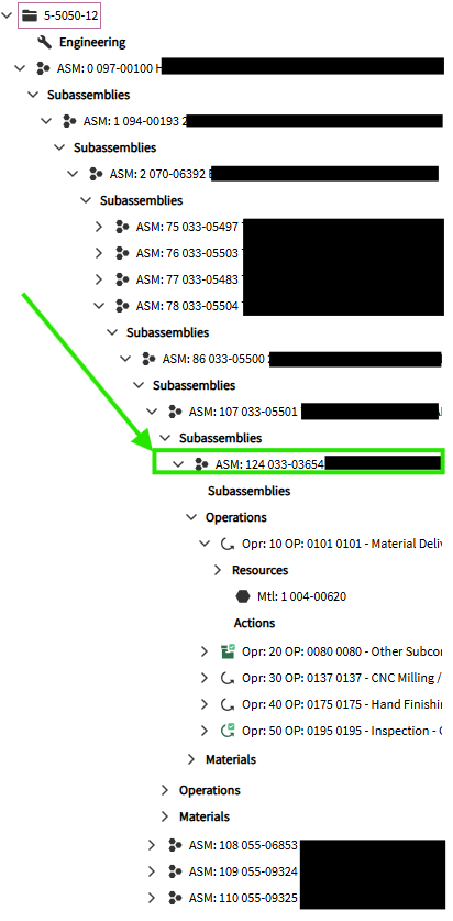 Entering an assembly number that DOES exist… (7) levels deep… the tree view successfully opens right to it!: